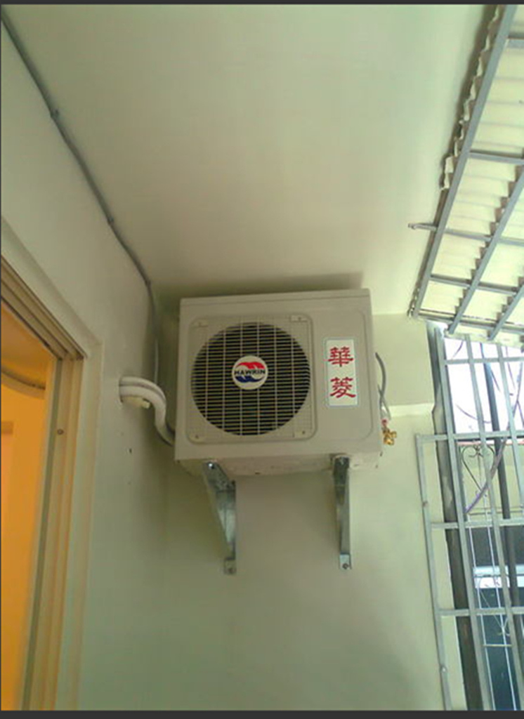 首先是隱藏管線法,使用簡易的木座廂體,配合選購的機型尺寸,將冷氣延伸的多條管線全部隱藏。