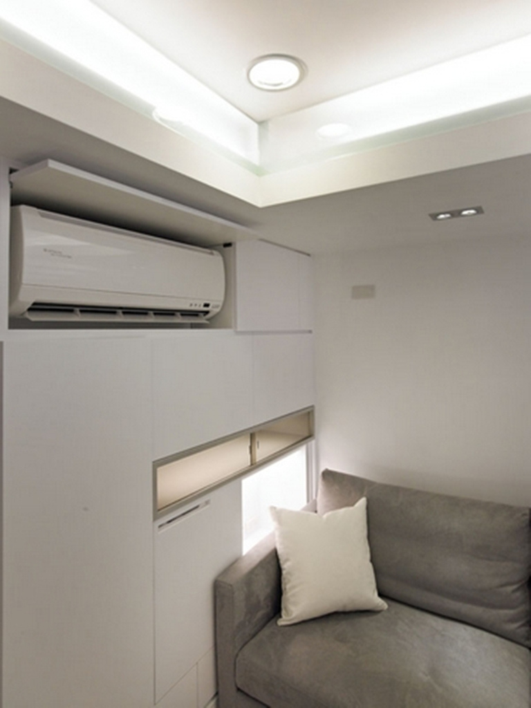 利用簡易的木座廂體,來隱藏冷氣的管線。